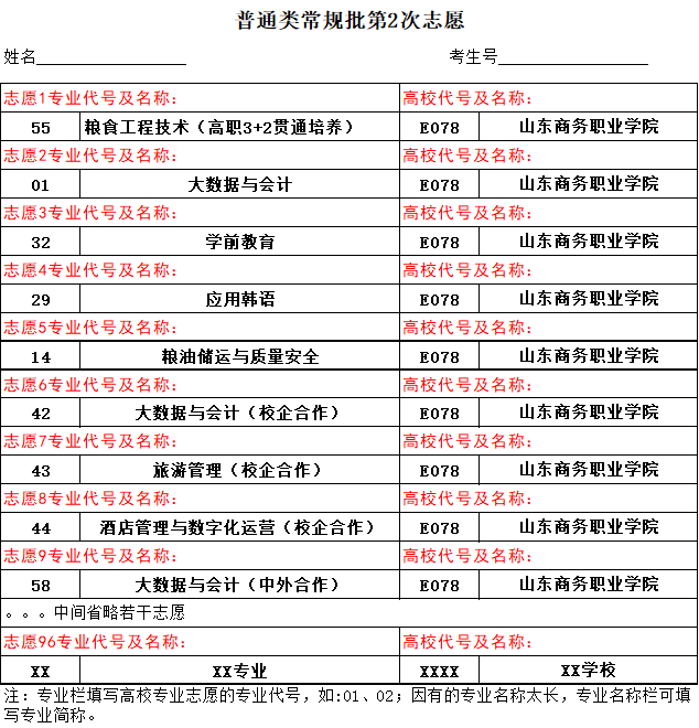 普通类常规批第2次志愿填报图例