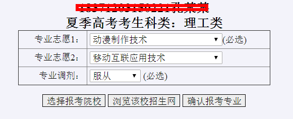 1、专业志愿1和专业调剂是必选项目,不选择无法保存志愿信息;