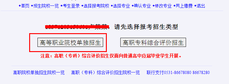注意:考生只能选择报考一所学校。缴费成功后,不再允许修改、放弃已报考的学校和专业。