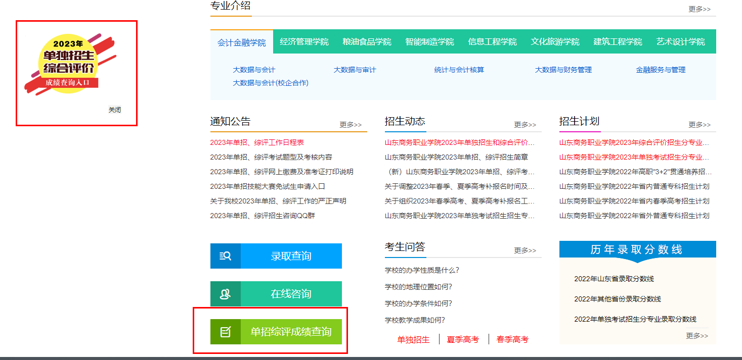 (二)通过学校招生信息网首页左下角【单招综评成绩查询】栏目进入成绩查询系统。