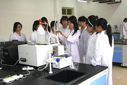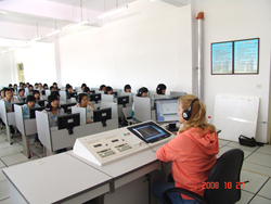 三、实训楼C区为语言实训中心,设备总值达200余万元,为商务外语系教学与实训场所,现建有语言视听室5个,(2个多媒体语言室,3个全数字化语言室),语言综合模拟实训室3个。语言实训中心它主要承担着应用韩语、商务英语、商务日语、应用英语等各专业的语言和实训任务,同时还承担着全院其他各专业的英语教学实践训练任务。中心数字化语言室可以实现课堂教学、分班教学、小组讨论、自主式和反馈式学习、自主学习和自主测试、同声传译、变速广播、多媒体控制、电子化听力室、多种监听辅导方式、电子备课、资料管理、无纸化考试和考试分析,同时教师机可通过阅卷系统对学生进行现场批卷。商务外语系以现代化的教学设备为支持不断进行语言教学改革,并加强外教教学水平建设,为语言类专业学生提供了良好条件。食品实训中心位于实训楼F区,是食品工程系实验实训场所,设有26个实验室,还拥有400多万元的进口教学仪器设备。