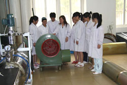 五、实训楼F区为食品实训中心,近两年新上仪器设备值达700万元,是食品工程系学生实习实训场所。食品实训中心拥有三十多台套国内先进的实验、实训仪器和设备。设有8个实训车间、15个实验室。其中中央财政支持建设的粮油食品检测中心投资300多万元,检测设备达世界水平。制粉工艺实训车间设备齐全,工艺完善,在全国高校中独一无二。同时设有国家粮食局、国家劳动保障部设立的12个特有工种职业技能鉴定站。近年来,学院先后在该实训中心组织举办职业技能鉴定班5期,学员2000多人次,本校学生占30%以上。