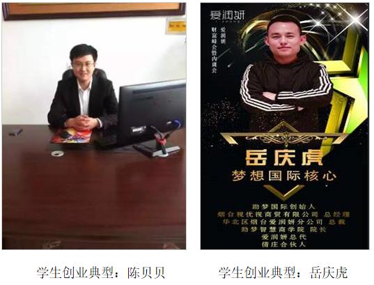 岳庆虎,2014级毕业生,在校期间成立优视商贸有限责任公司,从事商贸物流行业。毕业后扩大营业规模,现开设多家实体分店,员工人数十余人,成功拥有“爱润研”等多个化妆品地区总代理权。