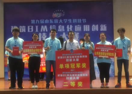 2017年5月,工程造价专业组队参加第九届山东省大学生建筑BIM信息化应用创新技能大赛,荣获BIM招投标项目管理单项一等奖一项、三维场地布置单项一等奖两项、团体二等奖两项。